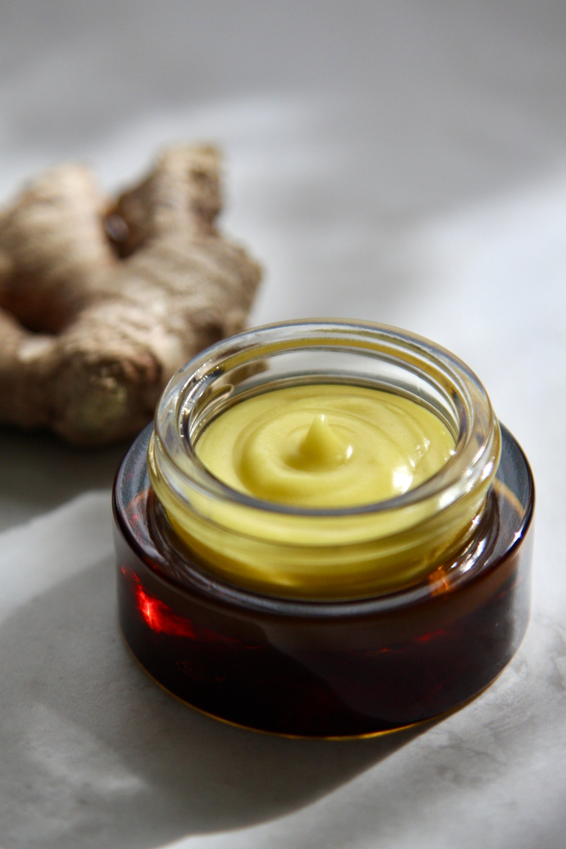 GINGER ROOT - Energizes the skin, improves circulation by creating a gentle warming effect that boost blood flow and helps to flash out stagnant blood and toxins.