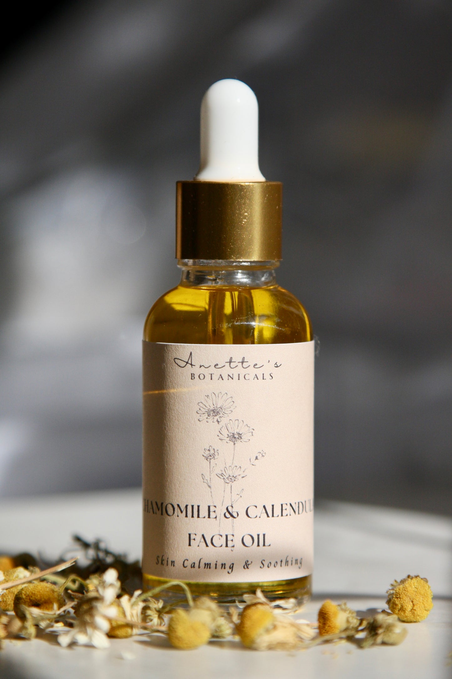 Lightweight and fast absorbing concentrated infusion of medicinal Chamomile and Calendula flowers in Jojoba oil. Properties of the herbs are highly calming and soothing to the skin, may help with occasional inflammation and hyperpigmentation. With regular use brightening properties of Chamomile plant may help to eliminate dark spots.